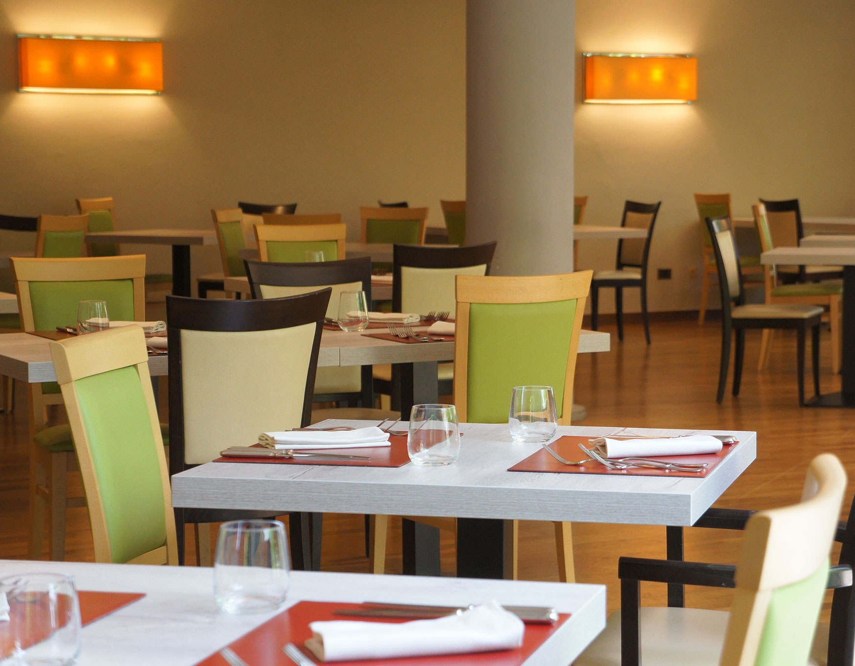 Our restaurant in Chianciano Terme welcomes you in a spacious, bright, and elegant indoor area. When the weather is milder, you can enjoy the veranda surrounded by greenery, an intimate and relaxing setting, perfect for dinner outdoors.