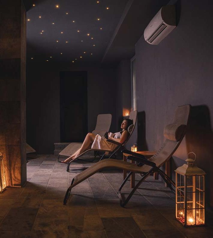 An environment where you can relax your body and mind, including through the use of chromotherapy. Ergonomic loungers and relaxing music await you.